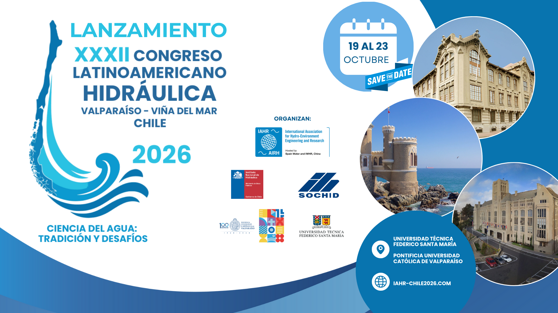 Valparaíso y Viña del Mar serán sede del XXXII Congreso Latinoamericano de Hidráulica en 2026, por lo que el próximo 27 de octubre a las 11:00 horas, en la sede de Santiago de la Pontificia Universidad Católica de Valparaíso, se realizará el lanzamiento de este evento a nivel nacional e internacional, para comenzar con la convocatoria de envío de trabajos y asistentes.